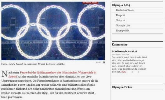 Dass man Werbung nicht wörtlich nehmen sollte, weiss jedes Kind und dass das auch für die FAZ gilt, beweist sie selbst einmal mehr in einem Artikel, der eine Panne bei der Eröffnungsfeier in Sotschi thematisiert.
